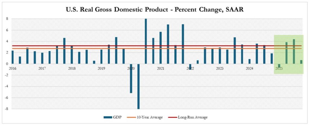 Figure 1 shows that the U.S. started 2025 with negative Real GDP growth – the first negative quarterly growth since the first quarter of 2022. While GDP growth accelerated in the second and third quarters, fourth quarter growth was restrained by the government shutdown that began in October.